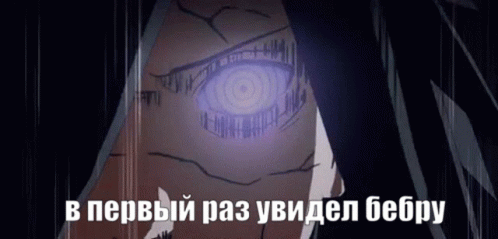 Madara's intense Rinnegan eye with the Russian caption "saw bebra for the first time."