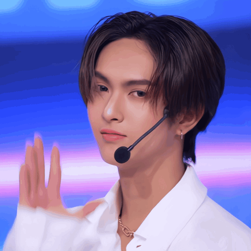 Copper Dechawat (CeeuDaychawat) performs, wearing a white shirt and a headset microphone.