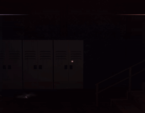 A Roblox character, dressed in a white, red, and yellow outfit, lies flat on the floor in a dark hallway.