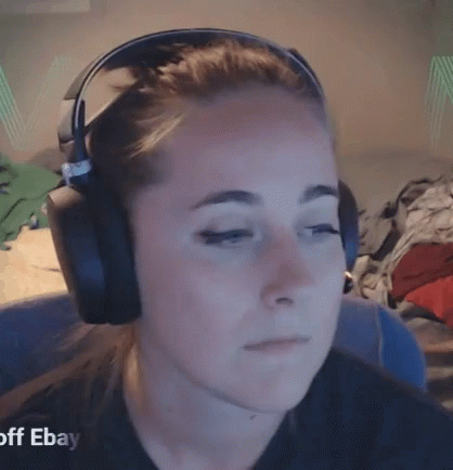 Streamer Beemes rolls her eyes while wearing headphones, with 'off Ebay' visible on screen.