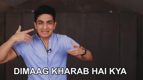 Ranveer Allahbadia (Beerbiceps) points to his head with the phrase 'Dimaag Kharab Hai Kya' on screen.