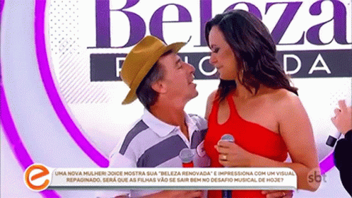 Joice shares a romantic kiss with a man in a hat on "Programa Eliana" after her "Renewed Beauty" transformation.