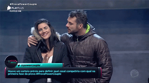 A couple shares an affectionate kiss during the #ProvaPowerCouple challenge on Power Couple Brasil.