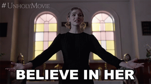 Alice, played by Cricket Brown, in a powerful scene from The Unholy Movie, urging viewers to believe in her.