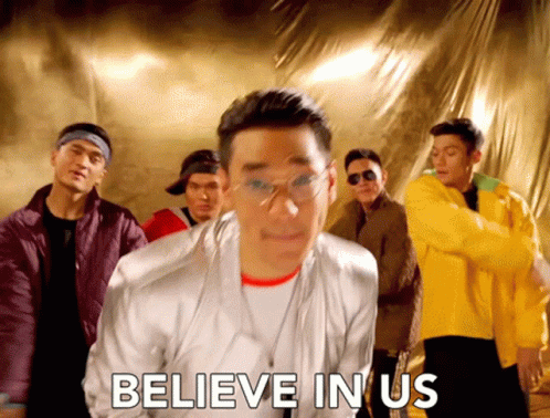 Indonesian singer Afgan performs 'Believe In Us / Percaya Akan Kita' in a music video, surrounded by backup dancers.