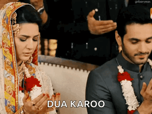 Madiha Imam and Wahaj Ali as Belsim and Bela, a bride and groom, praying together in a scene from Ishq Jalebi.
