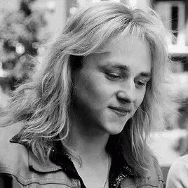 Ben Hardy, with long blonde hair and a denim jacket, smiles sweetly in a black and white photo.