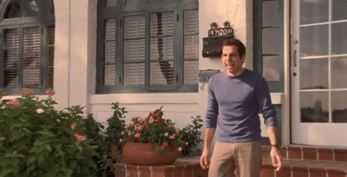 Ben Stiller stands outside a house, looking visibly upset and sniffling, appearing emotional and sad.