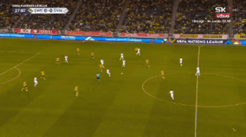 Benjamin Sesko scores a spectacular goal during a UEFA Nations League match between Sweden and Slovenia.
