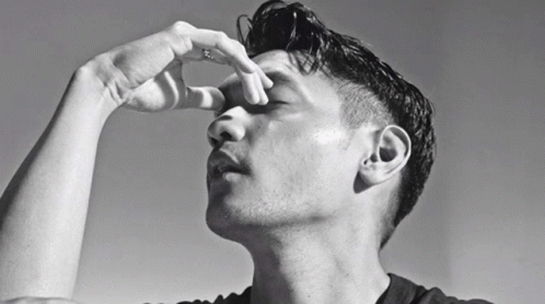 Afgan in a thoughtful pose, hand on forehead, in a striking black and white portrait.