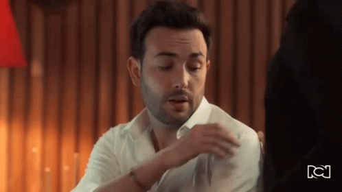 Sebastian Martinez as Mauricio kisses a woman's hand with chivalry, a moment of gallantry.