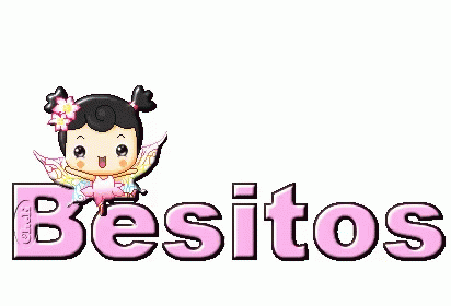 A cute cartoon fairy with wings and pigtails next to the word "Besitos" (meaning "kisses" in Spanish).