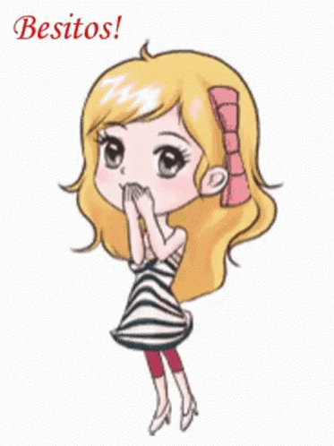 Animated cartoon girl with blonde hair and a heart on her cheek, sending "Besitos!" and little kisses.