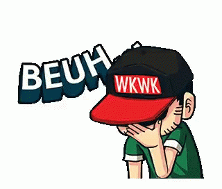 Animated sticker of a person in a baseball cap covering their face, expressing 'Beuh...' in dismay.