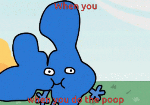 Blue cartoon character Four from BFDI/BFB reacting to the 'When you do the poop' meme, joined by Eraser.