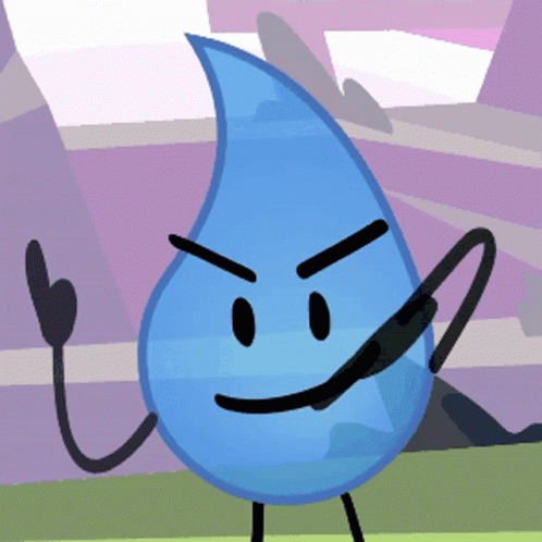 The animated character Teardrop from BFDI/BFB changes expressions, showcasing a determined look and a big smile.