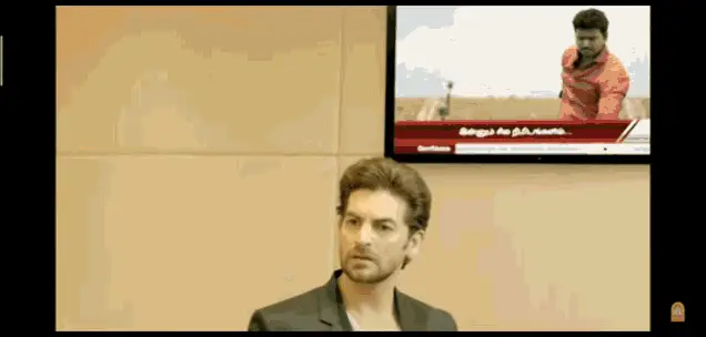 Nitin and Mridul in a tense moment, with Mridul holding Nitin's arm as they appear to be fleeing.