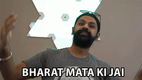 Jasminder Singh (Jaysn) passionately says "Bharat Mata Ki Jai" with a namaste gesture.