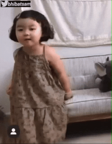 Cute kid Jin Miran sitting and moving her legs, looking happy and excited.