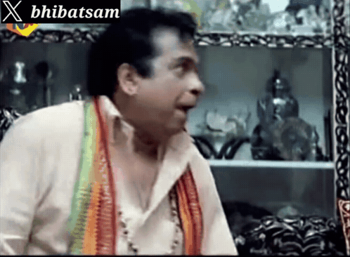 Brahmanandam in a scene from 'Bhibatsam Stalin', delivering a classic Telugu comedy reaction.
