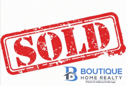 A red 'SOLD' stamp overlaid on the 'Boutique Home Realty' logo, indicating a property sale in Illinois or Indiana.
