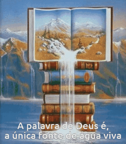 Bi Agua Viva: A magical waterfall flows from an open book on a stack of books.