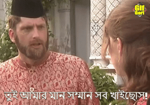 A man in a Bangladeshi movie scene dramatically tells a woman she has ruined his honor and respect.