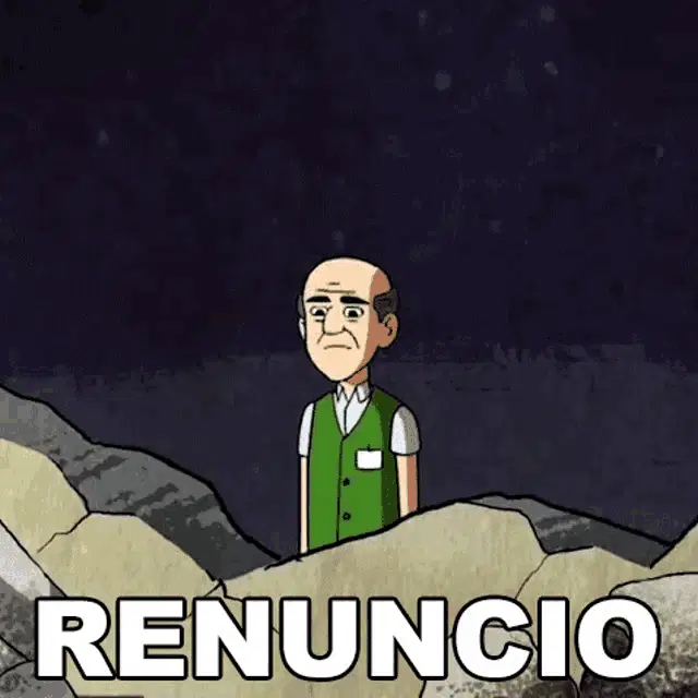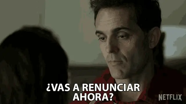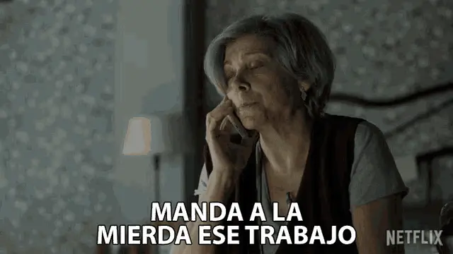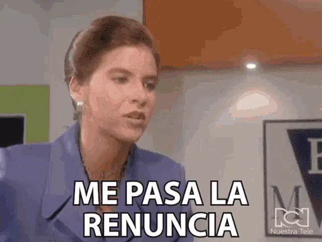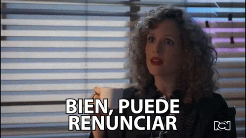 Victoria, from Enfermeras, says 'Bien, puede renunciar' while holding a coffee cup in an office setting.