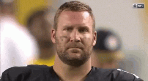 Ben Roethlisberger, known as Big Ben, shows a surprised 'Oh Face' reaction during an NFL game.