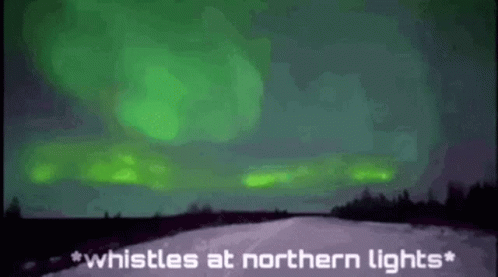 Bilbo Baggins' face appears in the northern lights after someone whistles at the sky.
