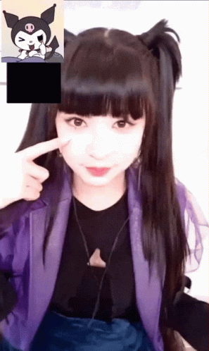 Billlie Kpop member poses playfully with various Sanrio characters like Kuromi, My Melody, and Hello Kitty.