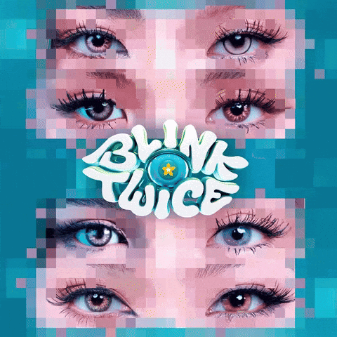 Bini Blink Twice poster featuring a pixelated image of a woman's eyes, emphasizing the theme.