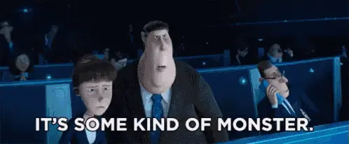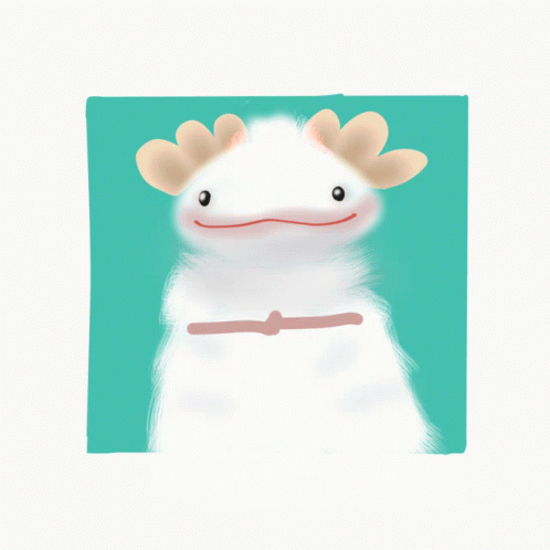 A fluffy white axolotl-like monster holds a yellow string that spells out 'Happy Birthday' on a teal background.