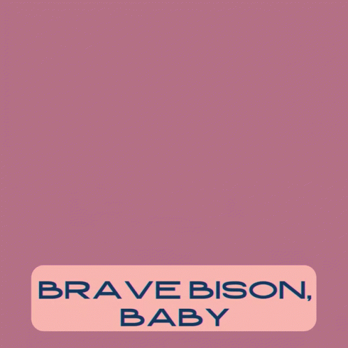 A cute cartoon bison with hearts and the text "Brave Bison, Baby" on a pink background.
