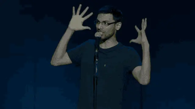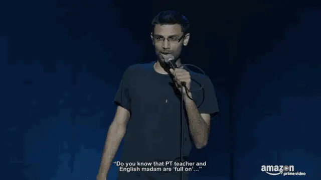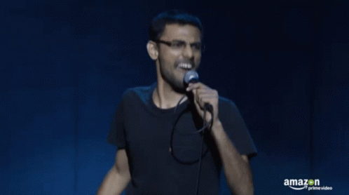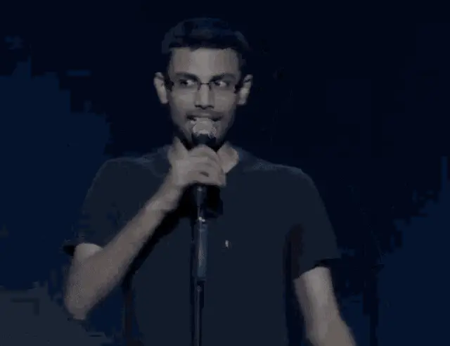 Biswa Kalyan Rath performs stand-up comedy as Biswa Masth Aadmi, singing into a microphone.