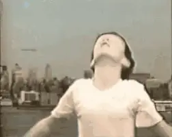 A fabulous Barbie-like figure with long blonde dreadlocks dancing in a sparkly red outfit.