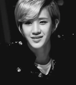Bjoo from K-pop group ToppDogg makes a cute, pouting, wacky face in black and white.