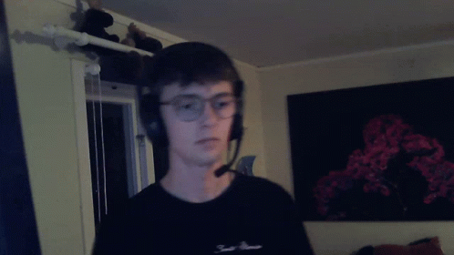 Björn Rävlanda, a young man wearing headphones, reacts with a surprised and wide-eyed expression.