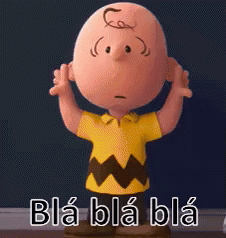 Charlie Brown from The Peanuts Movie expresses disinterest with a 'Bla bla bla' gesture.