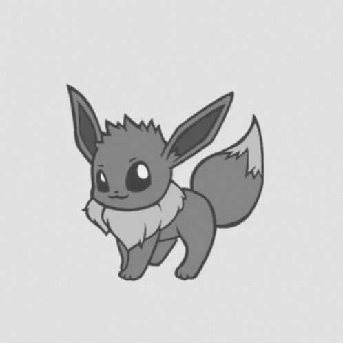 Cute black and white animated Eevee evolutions, including Flareon and Espeon, showcasing their designs.