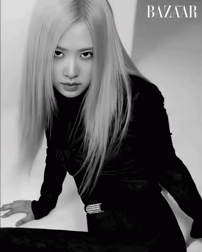 Blackpink's Rosé poses intensely in a black and white shot for Harper's Bazaar magazine.