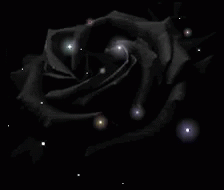 A dark black rose is illuminated by numerous sparkling lights, creating a mystical and elegant visual.