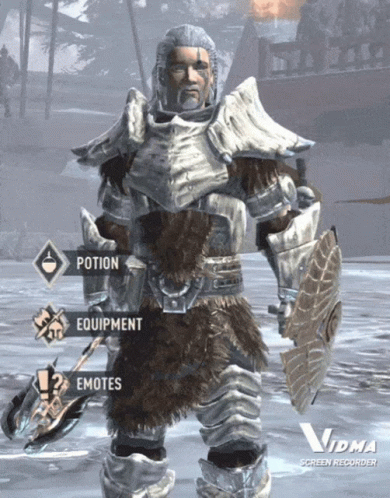 A man in armor performs a unique Vaseline emote in the game Blades, featuring UI elements and a funny animation.