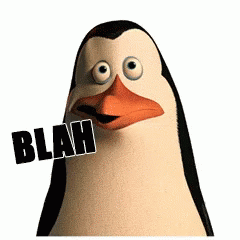 A cartoon penguin from Madagascar with a bored expression and 'BLAH BLAH' text overlay, often used as a meme.