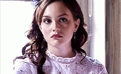 Blair's sassy eyeroll transitions into a subtle smile while she stands in a white lace top.