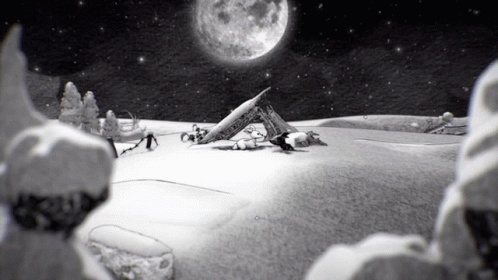 A heartwarming scene from Blanc Game, featuring a white fawn and a black wolf cub cuddling in a snowy landscape.
