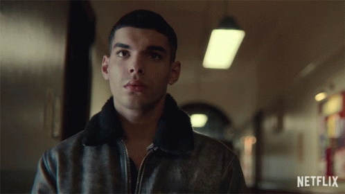 Sami Outalbali as Rahim from Sex Education gives a blank stare, then turns and walks away in a hallway.