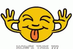 A yellow emoji sticks out its tongue and makes a face with hands up.