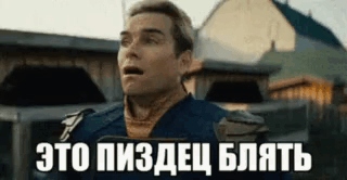 Man with a surprised look reacting to something, with Russian text 'ЭТО ПИЗДЕЦ БЛЯТЬ' overlaid.