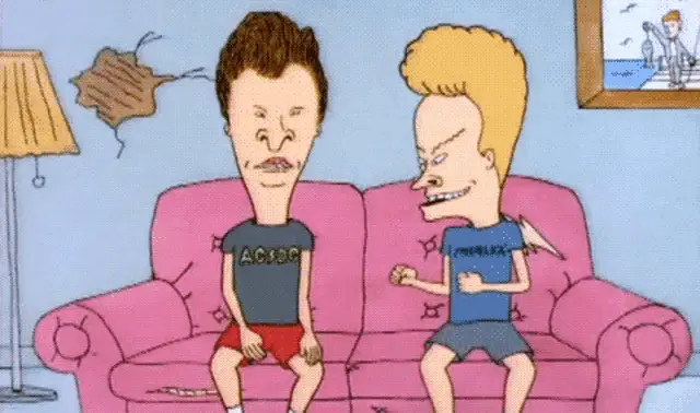 Butt-Head accidentally blinds Beavis with a misdirected flash beam from a microphone-like device.